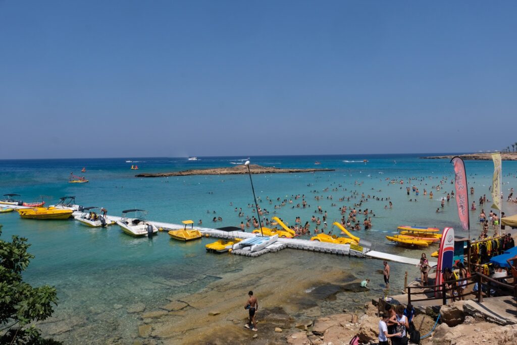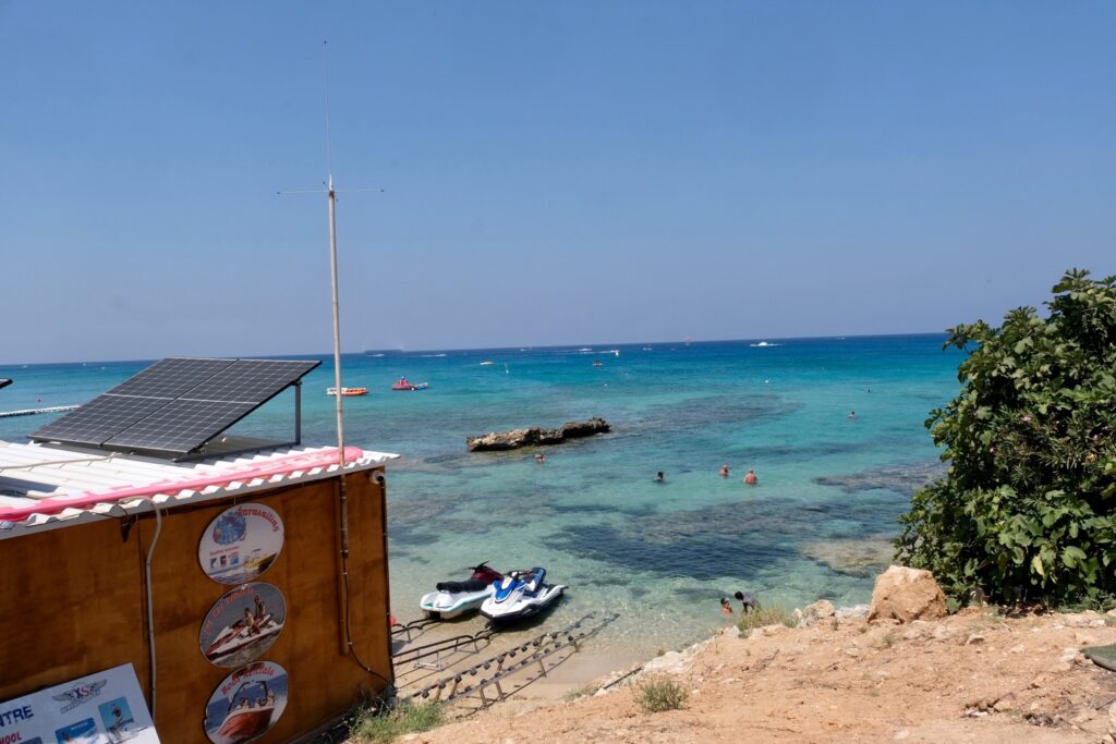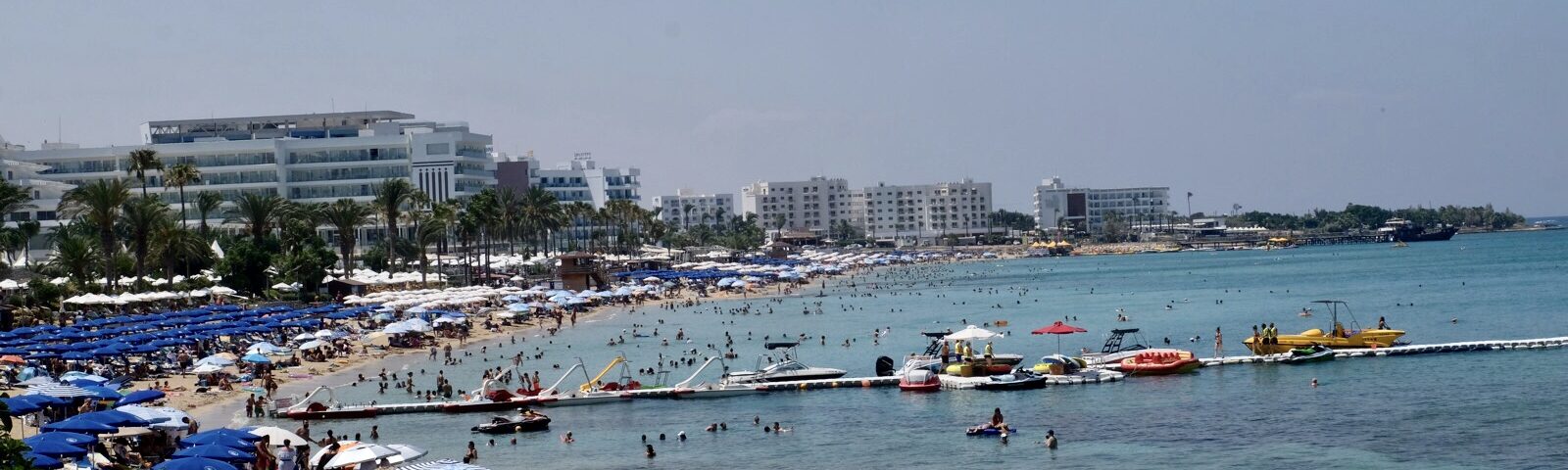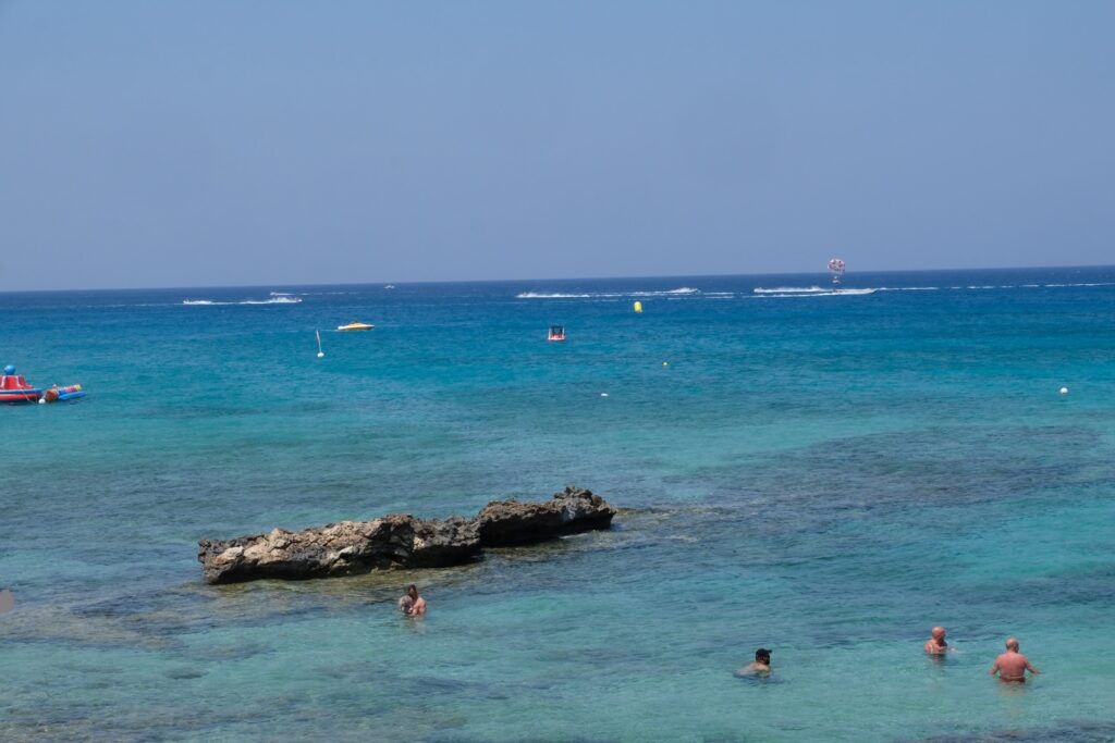 This is certainly not our idea of a beach holiday. In some places the gaps between sun beds was very little. There were hundreds of people on the beaches and the sea was so busy with water sports. You could choose a parachute ride behind a speed boat, ride an armchair, a banana and more. Prices all seemed very expensive to us for these activities.