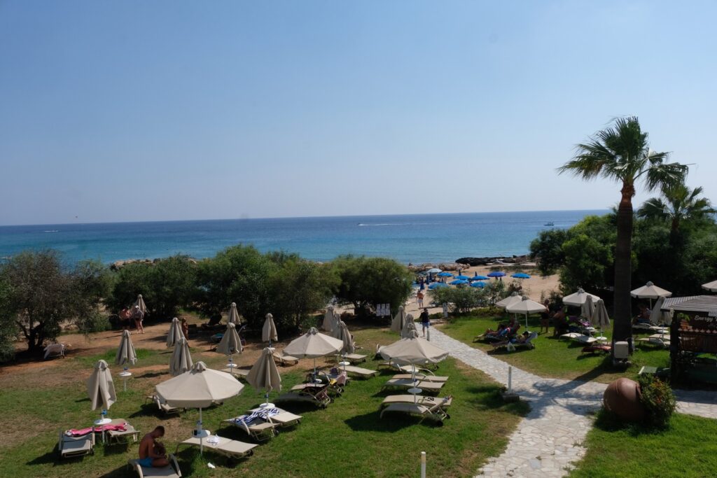 Good morning from the Mimosa Beach Hotel in Protaras, Cyprus. The sun is high in the sky at 10am and its 29 degrees.