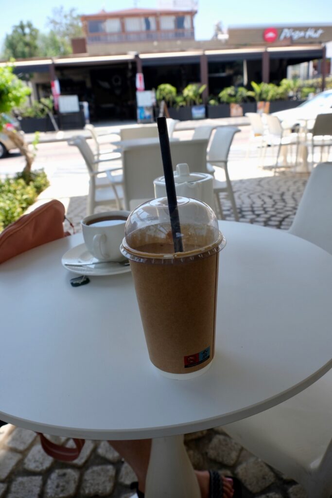 Time for a break and a sit down. Frappe and Earl Grey Tea and Ice cream. Then some shopping. Cheryl was looking at sun dresses and bikinis. She luckily found some ‘flip flops’ to replace the ones Murphy (our puppy) chewed.